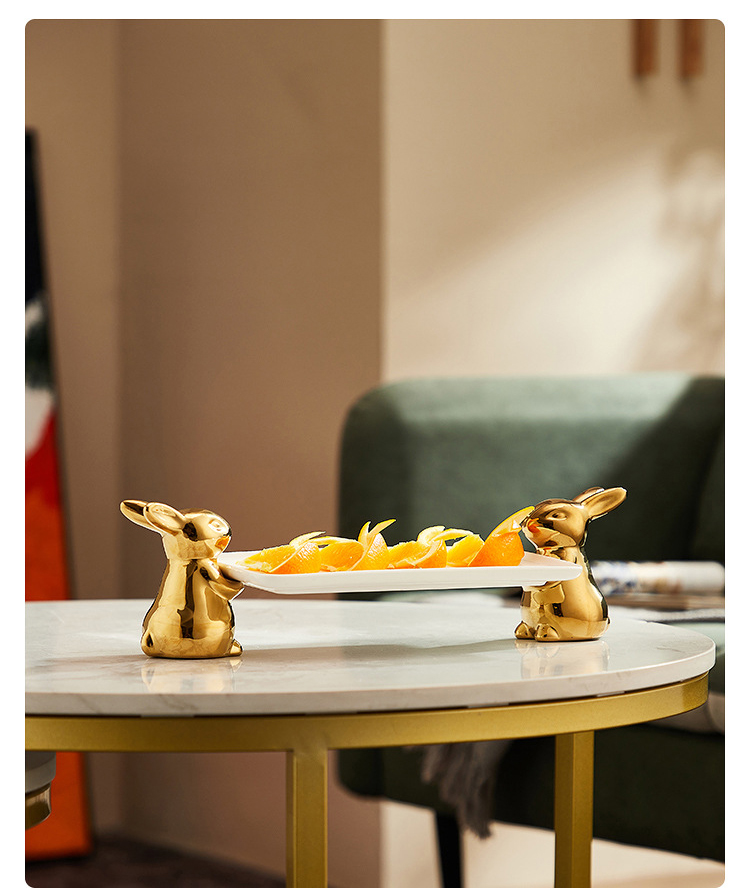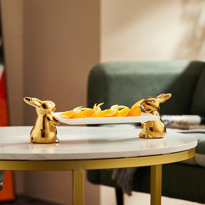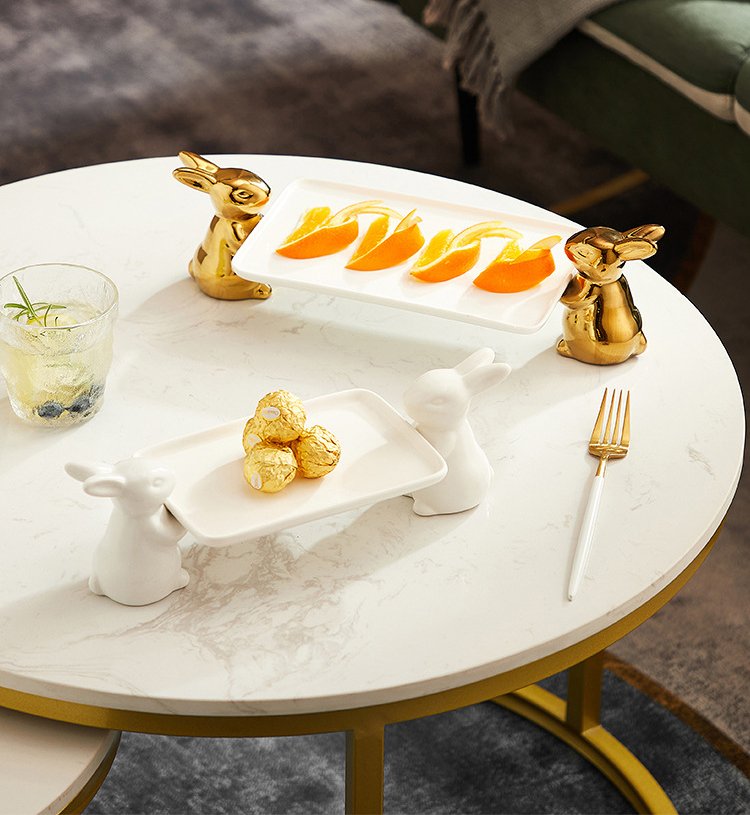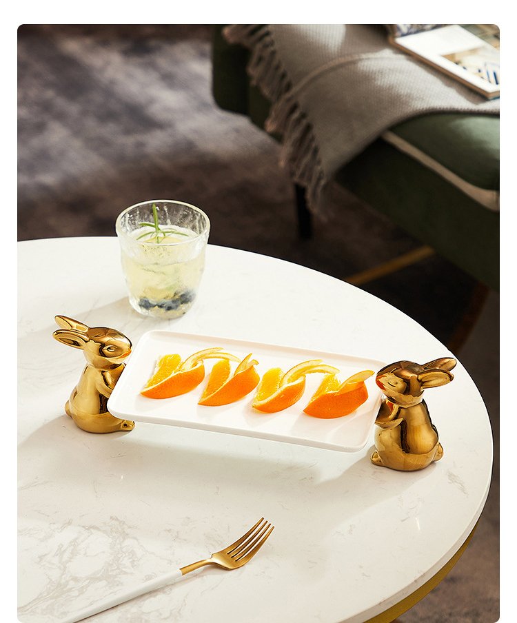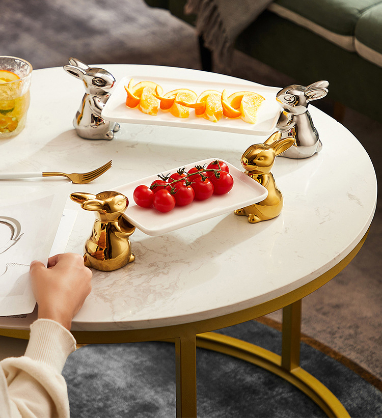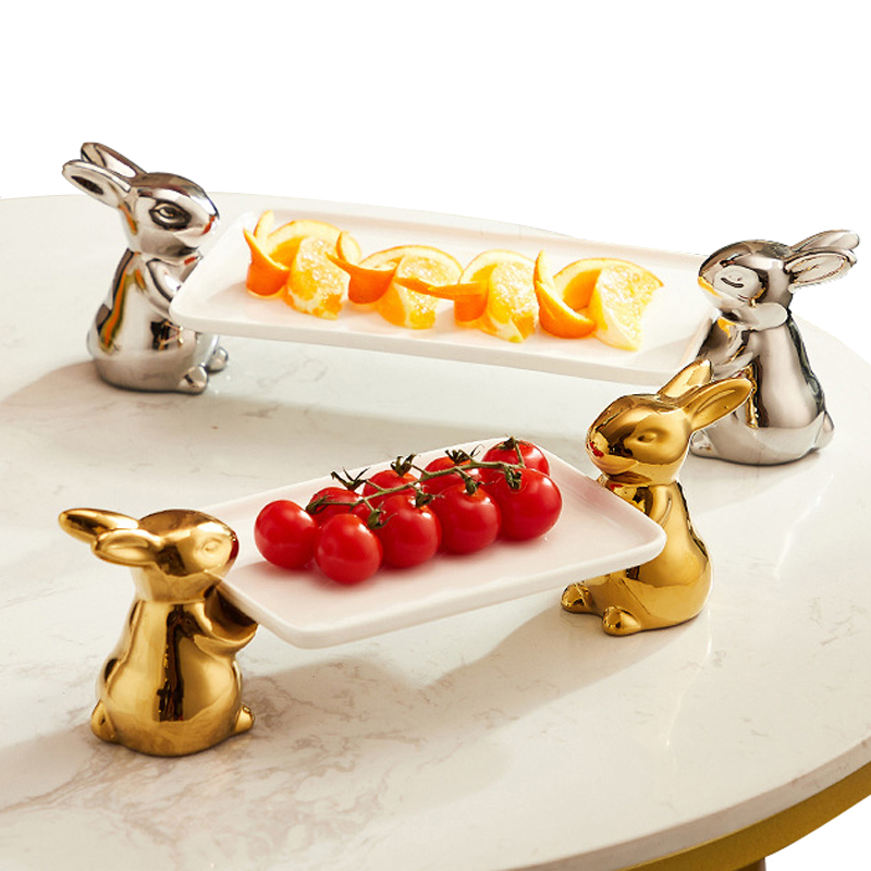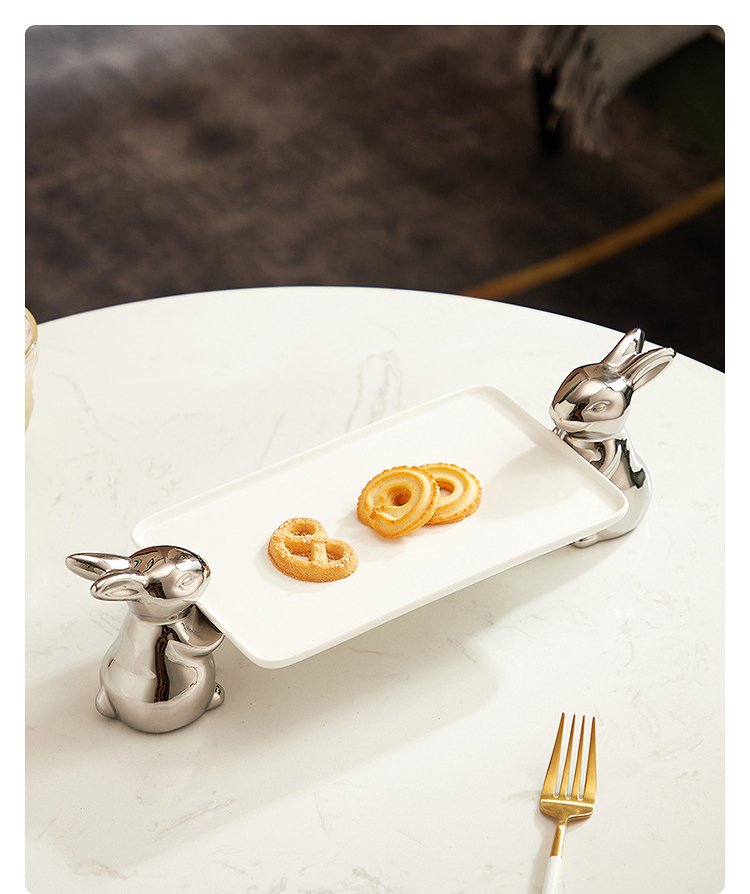 Ceramic Cupcake Tray Stand with Rabbit Base Decorative Tray for Food or Dessert KP492