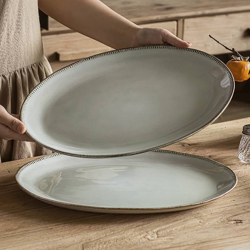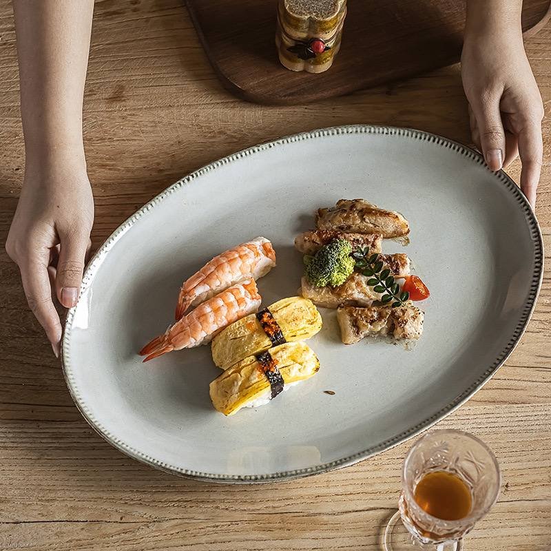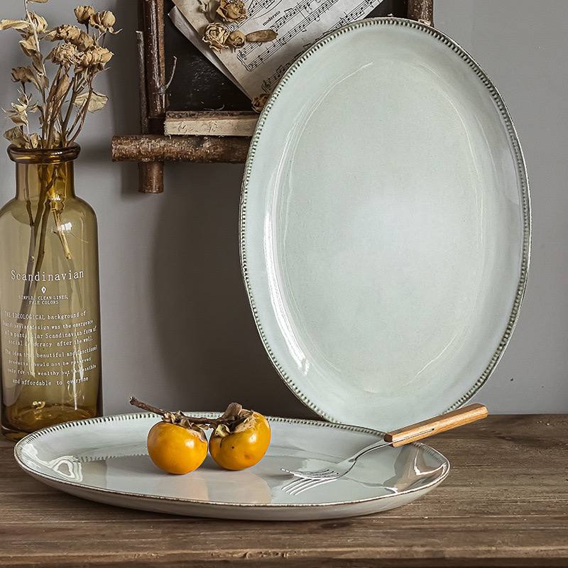 Kitchen Plus 14 inch Ceramic Oval Plate Serving Platters for Party