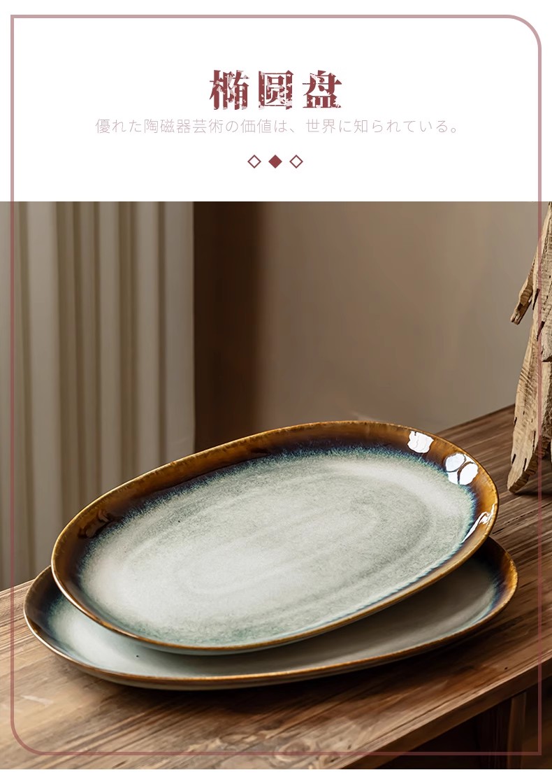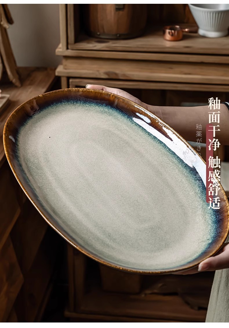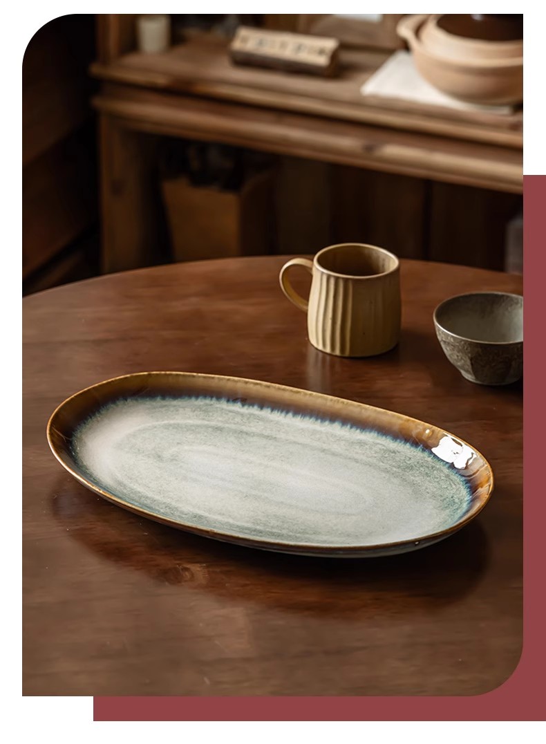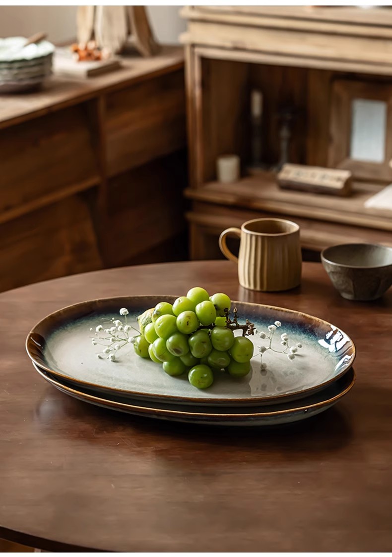 Kitchen Plus 16 inch Western Oval Ceramic Serving Plate Serving Platter Serving Plate KP743