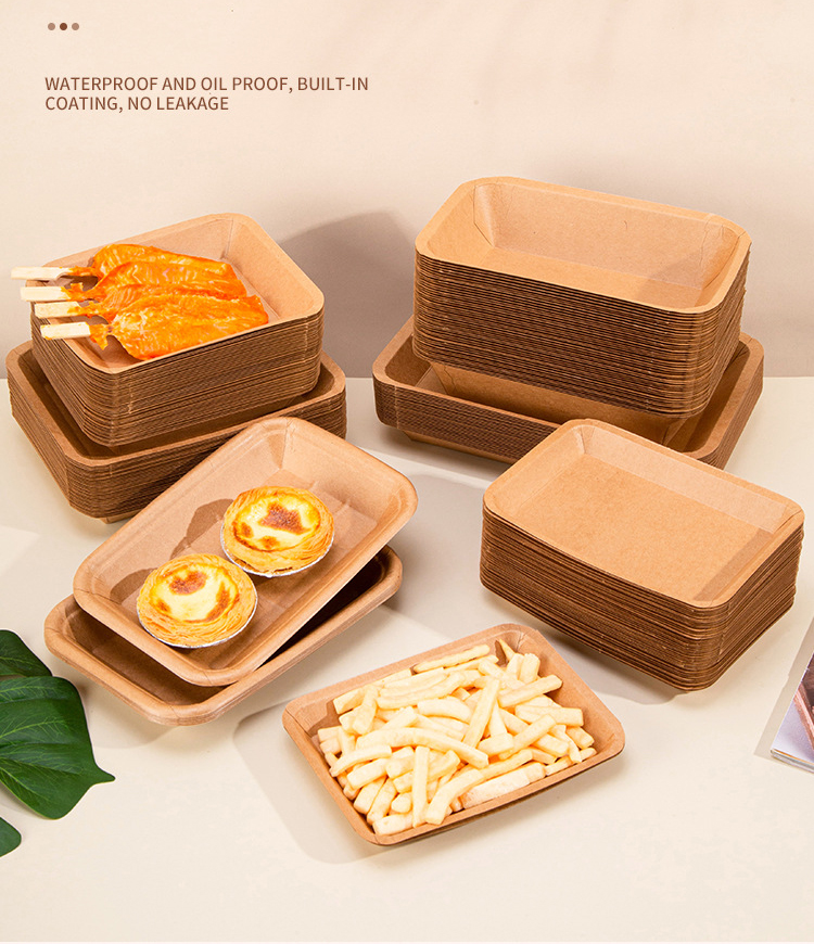 Kitchen Plus Brown Kraft Paper Tray PE Lamination Biodegradable Disposable KP973