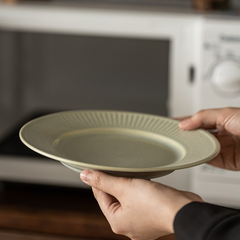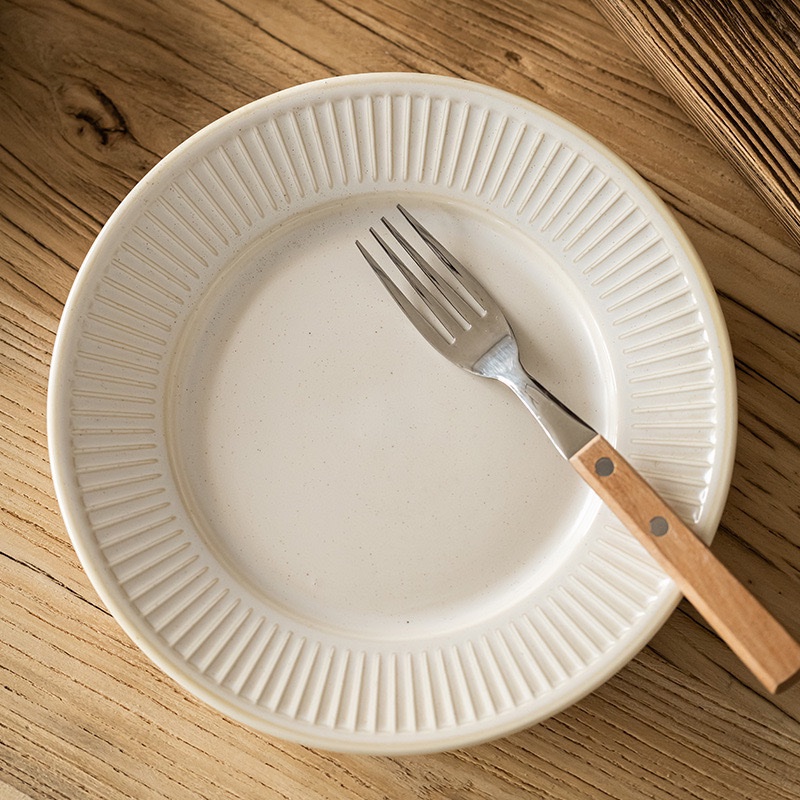 Kitchen Plus 8.5 inch Embossed Pattern Ceramic Large Round Flat Dinner Plate