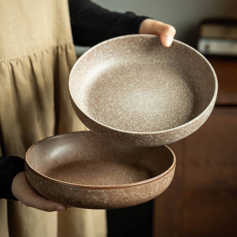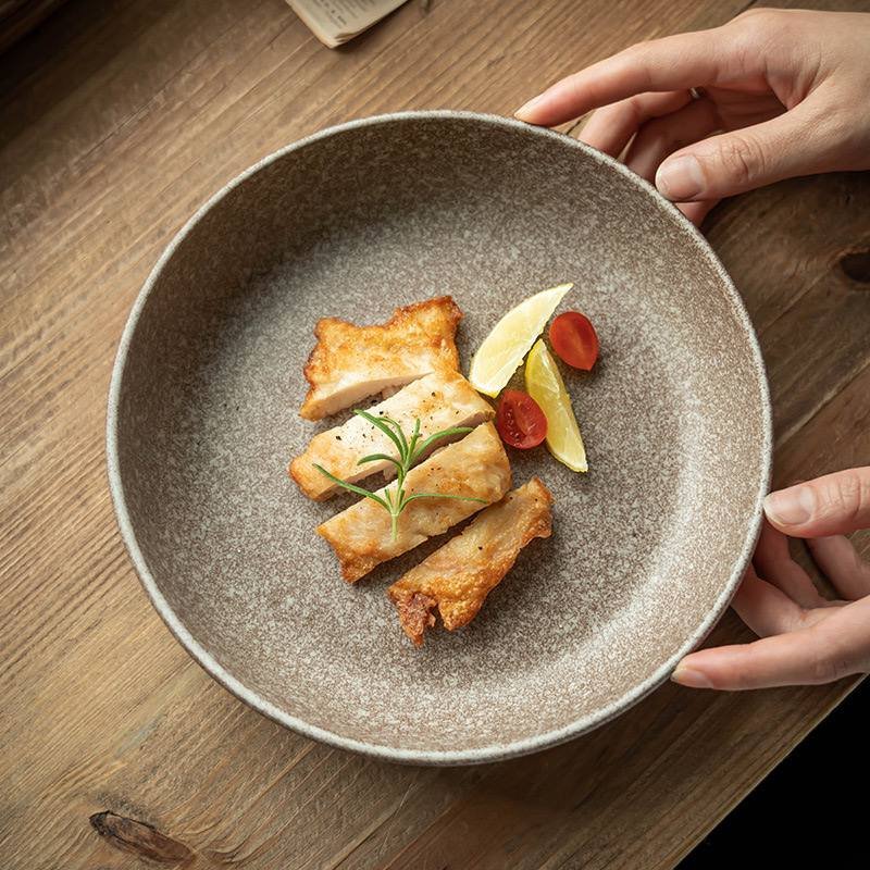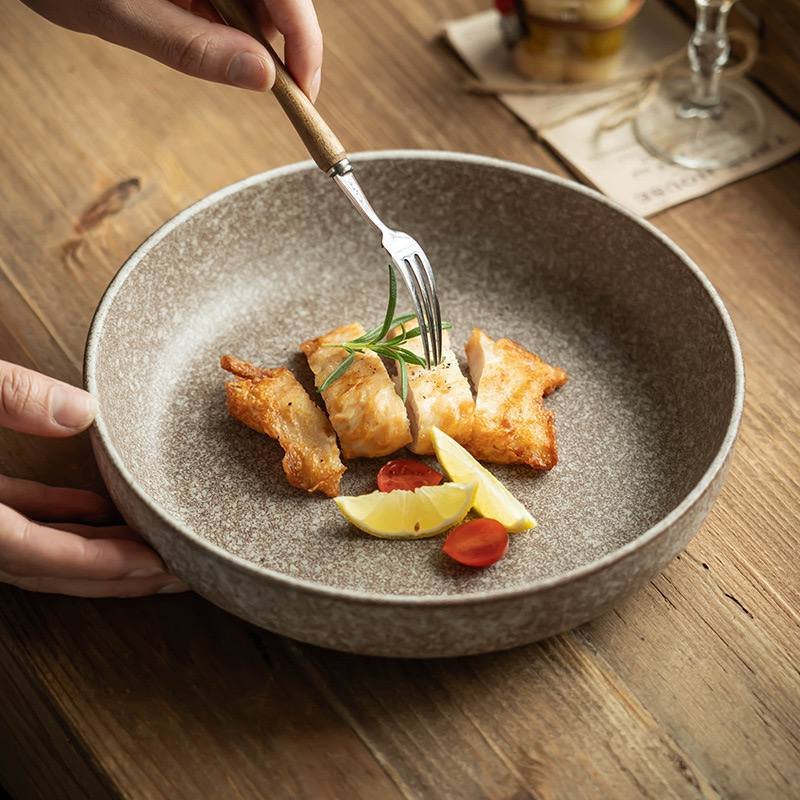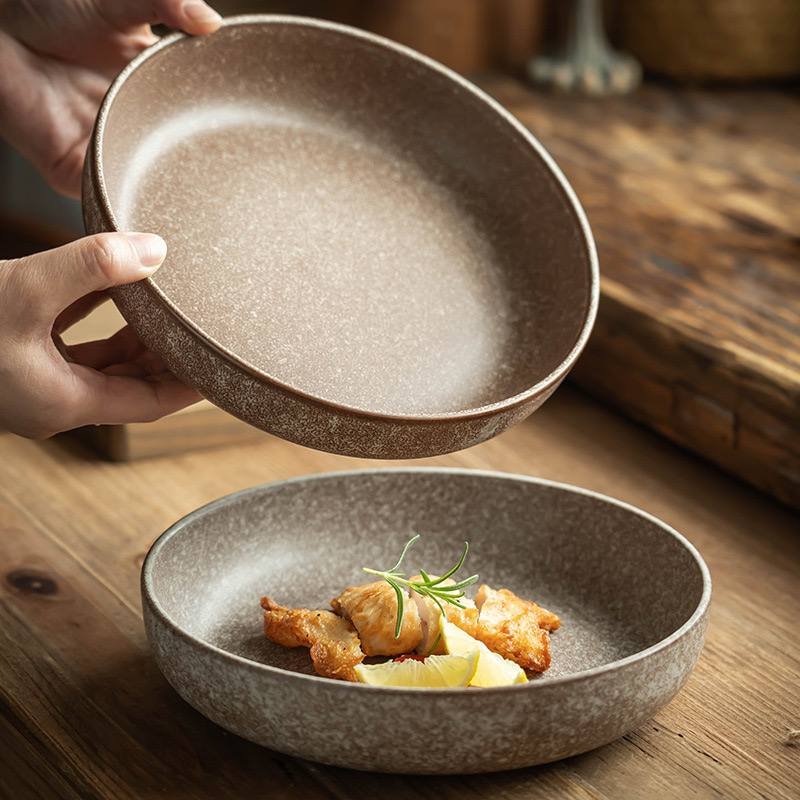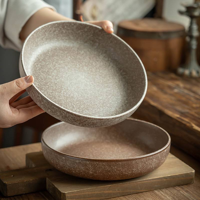 Kitchen Plus 8 inch Retro Ceramic Shallow Plate Salad Bowl Dessert Bowl Pasta Plate