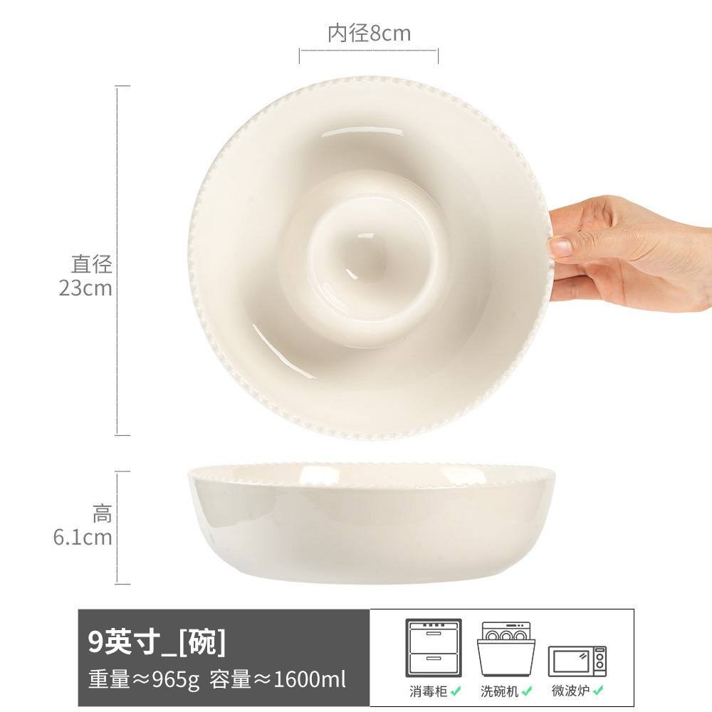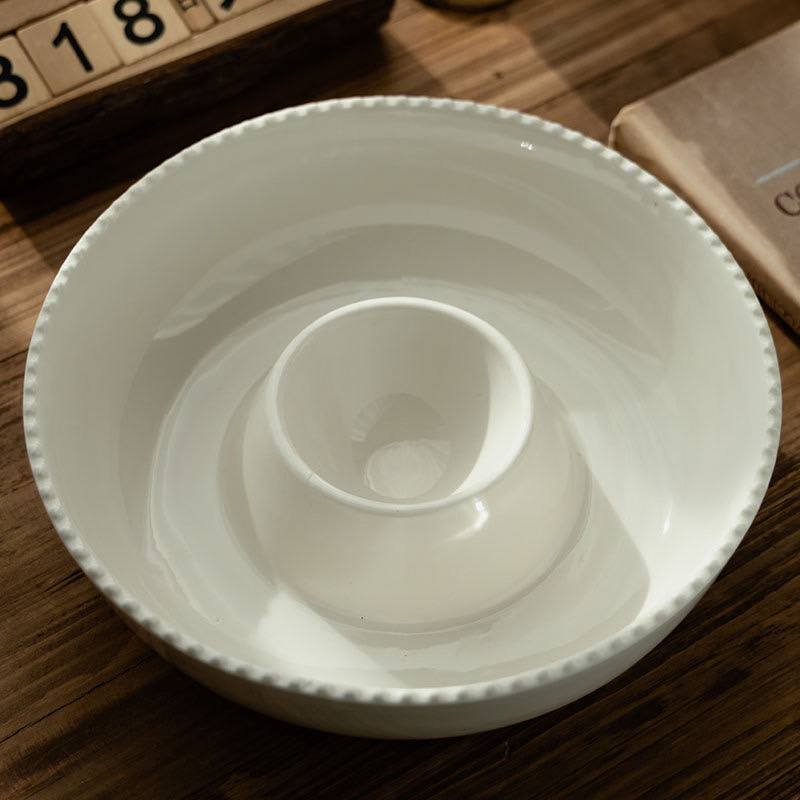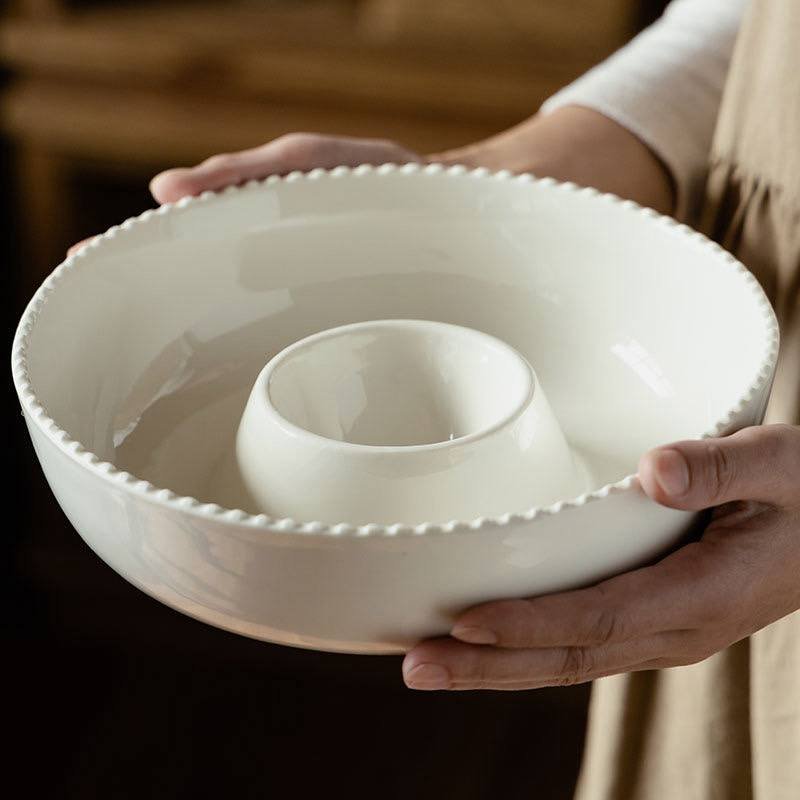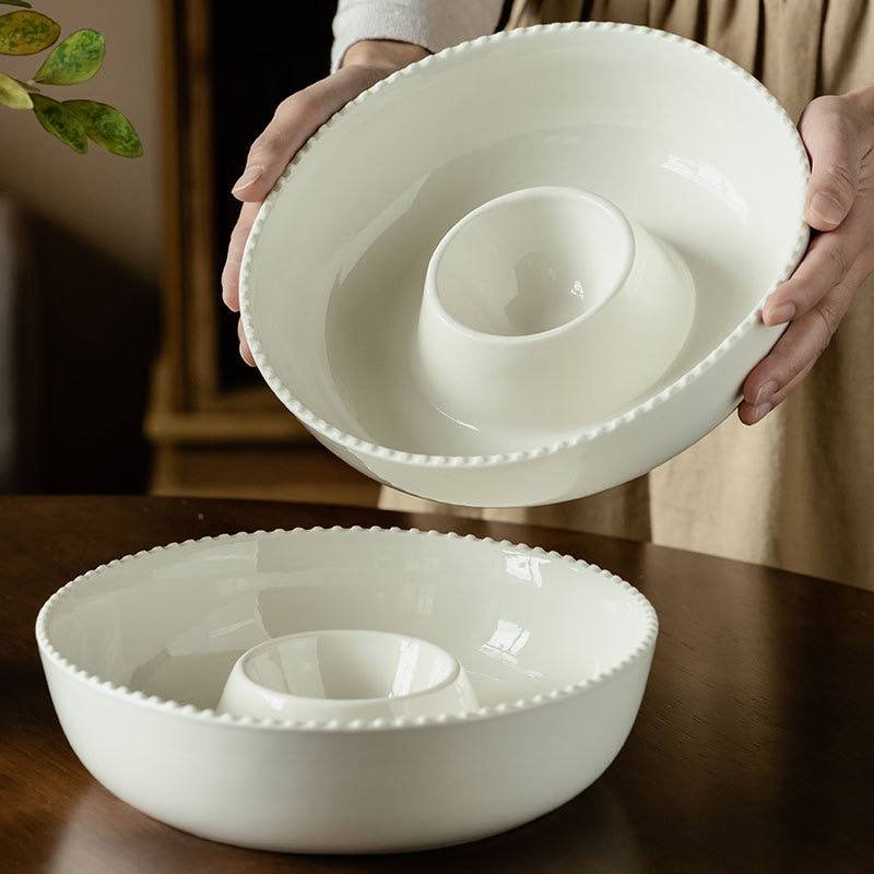 Kitchen Plus Beaded Ceramic Snack Bowl Divided Plate with Dipping Sauce KP966