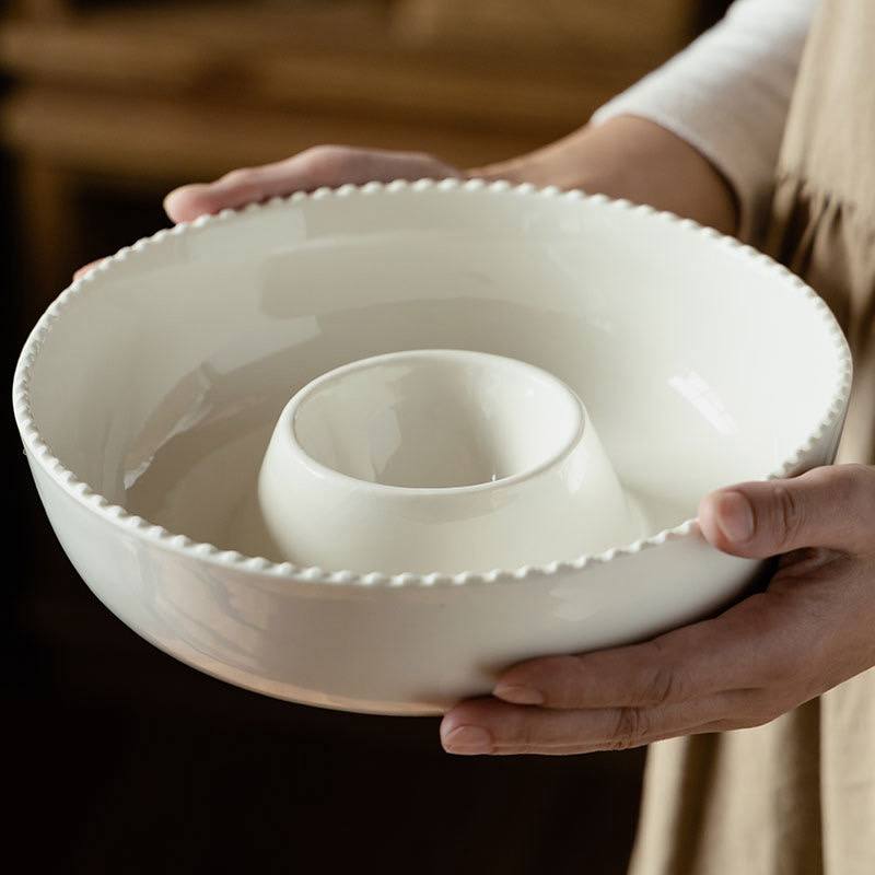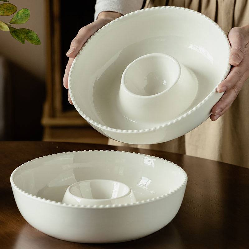 Kitchen Plus Beaded Ceramic Snack Bowl Divided Plate with Dipping Sauce  KP966