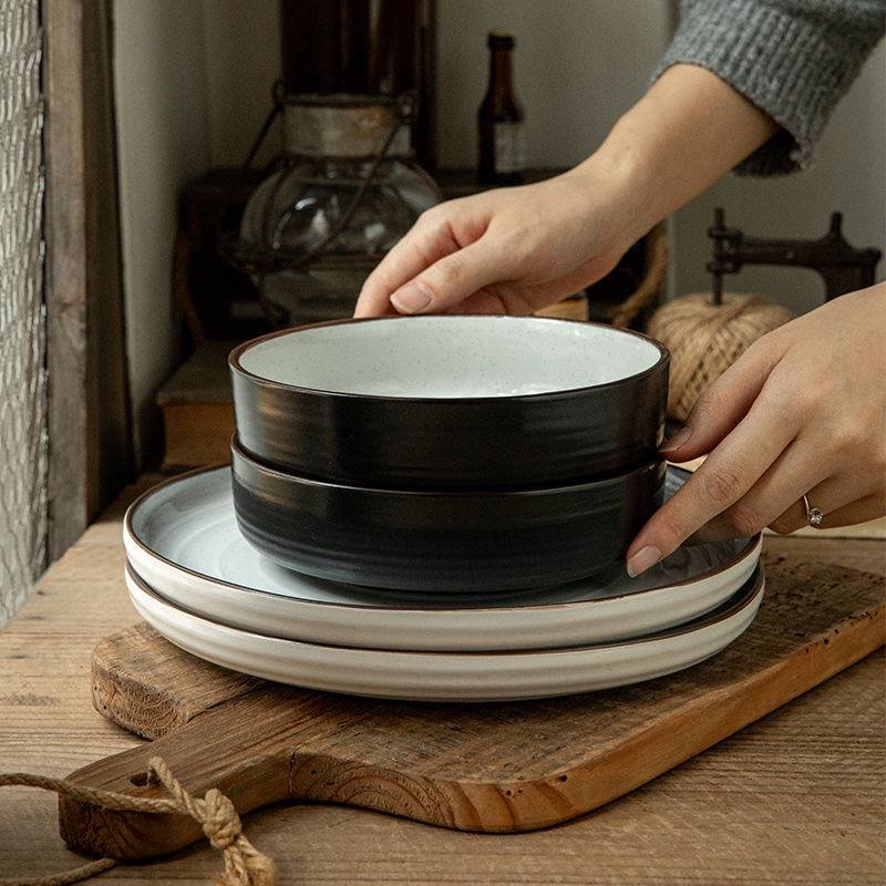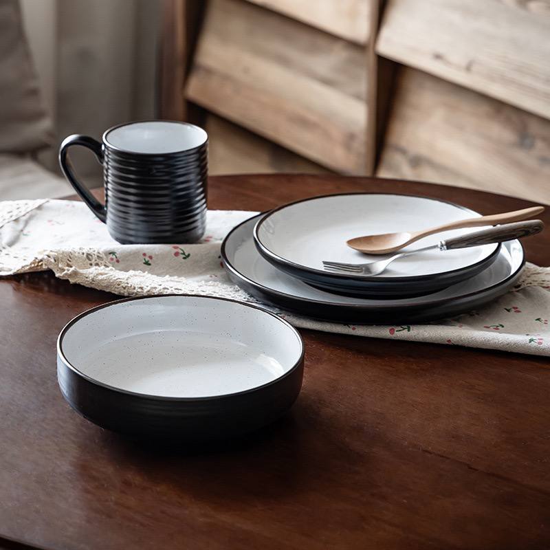 Kitchen Plus Black and White Stylish Ceramic Dinnerware Set