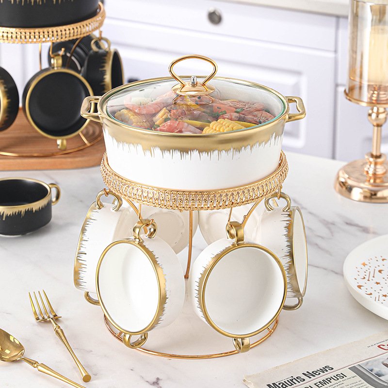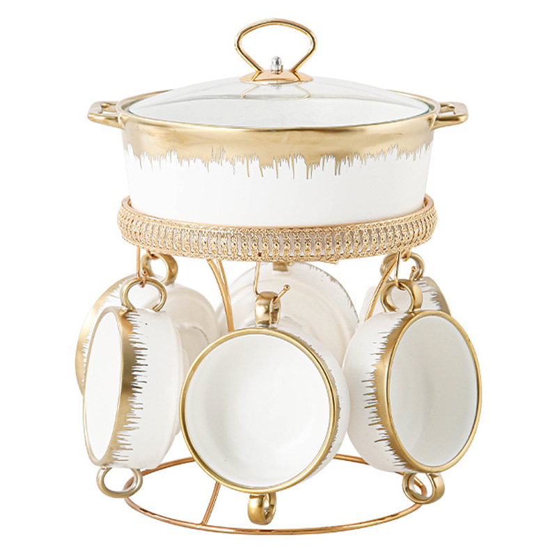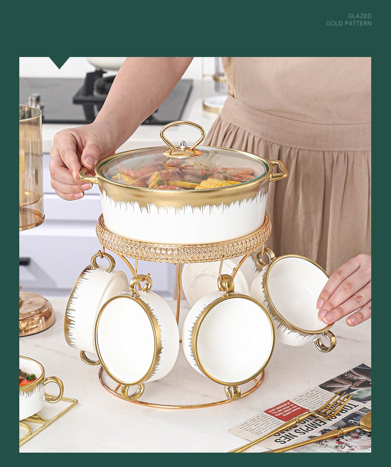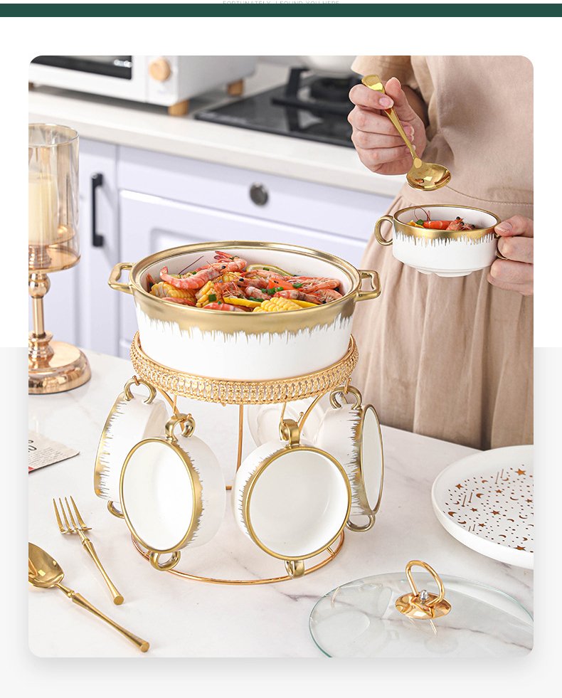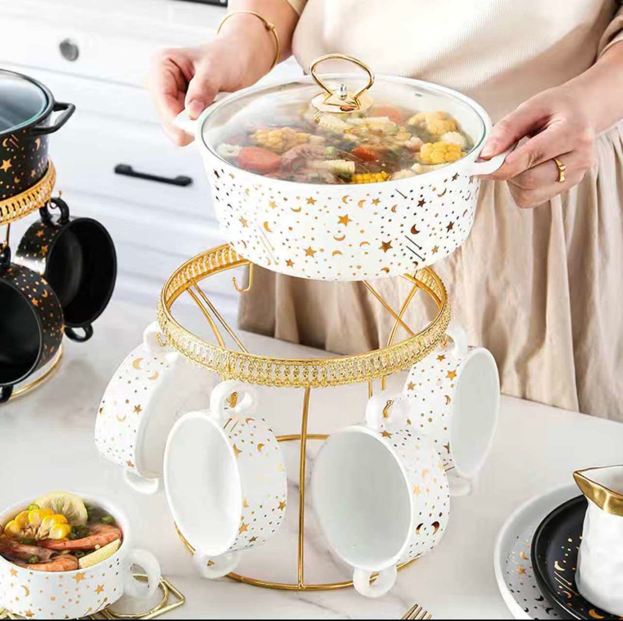Kitchen Plus Ceramic Serving Soup Pot with 6 piece Bowls Nordic Light Luxury Design