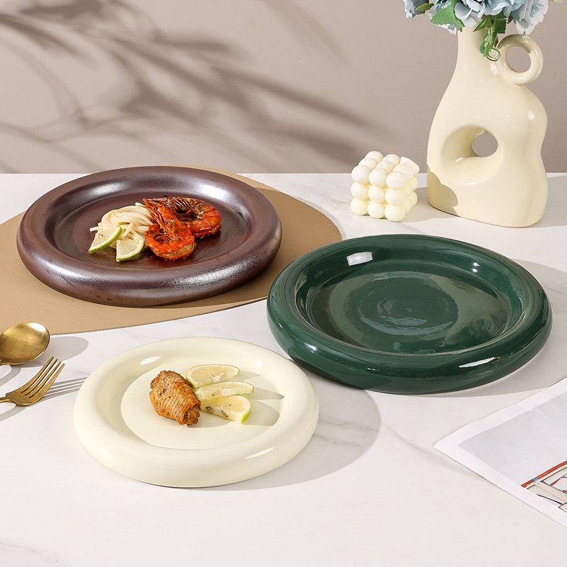 Kitchen Plus European Style Doughnut Shaped Ceramic Plate Dessert Plate Appetizer Plate Dinner Plate KP1025