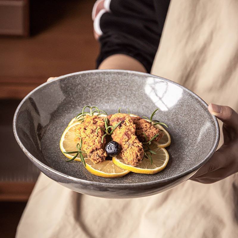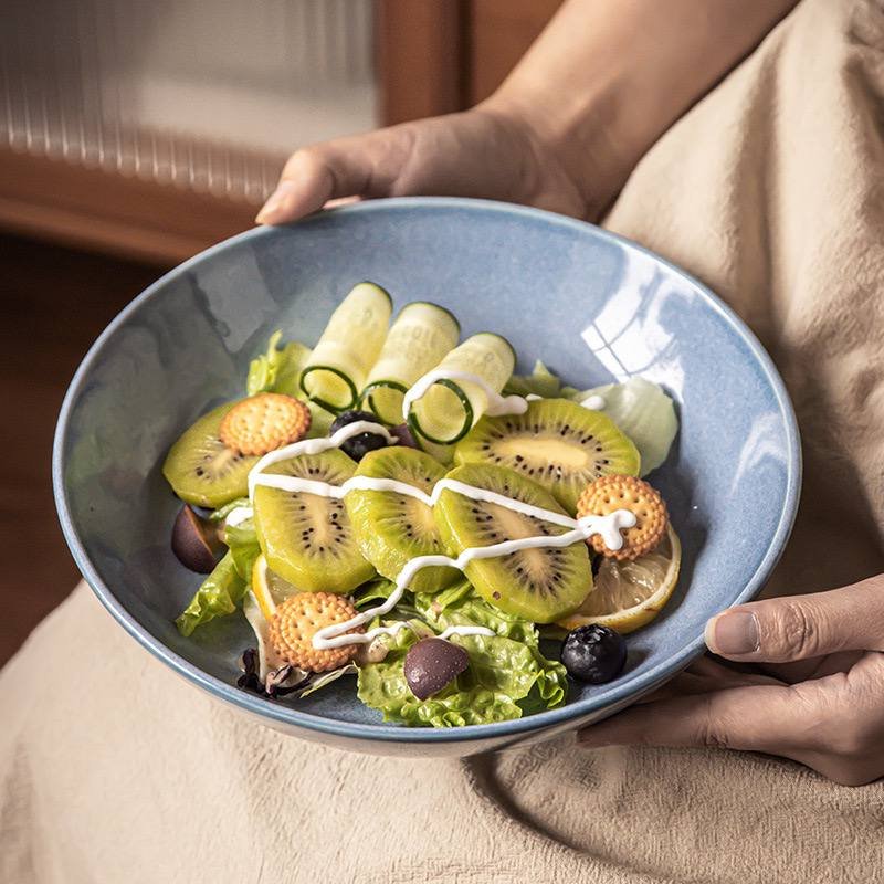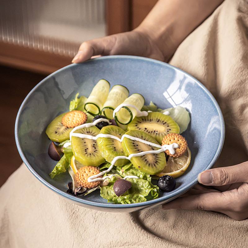 Kitchen Plus Glazed Chinese-Style Kitchen Ceramic Pasta Bowl Salad Bowl Serving Bowl KP815