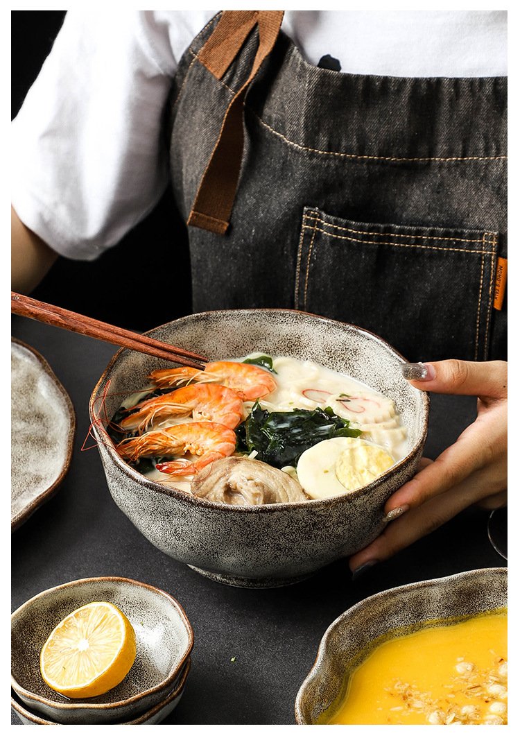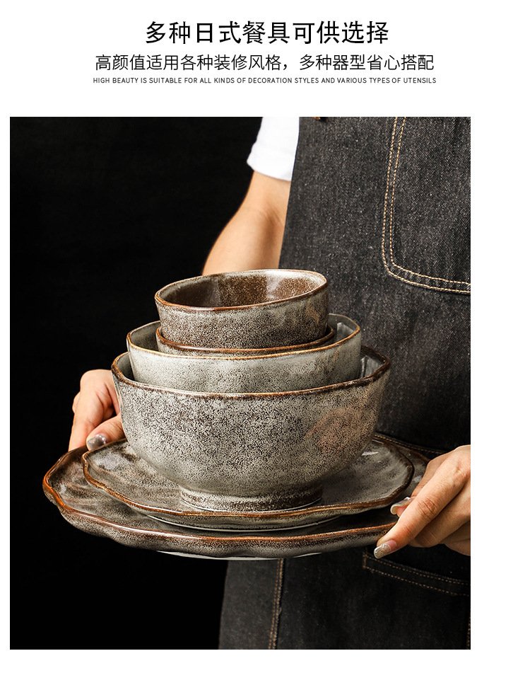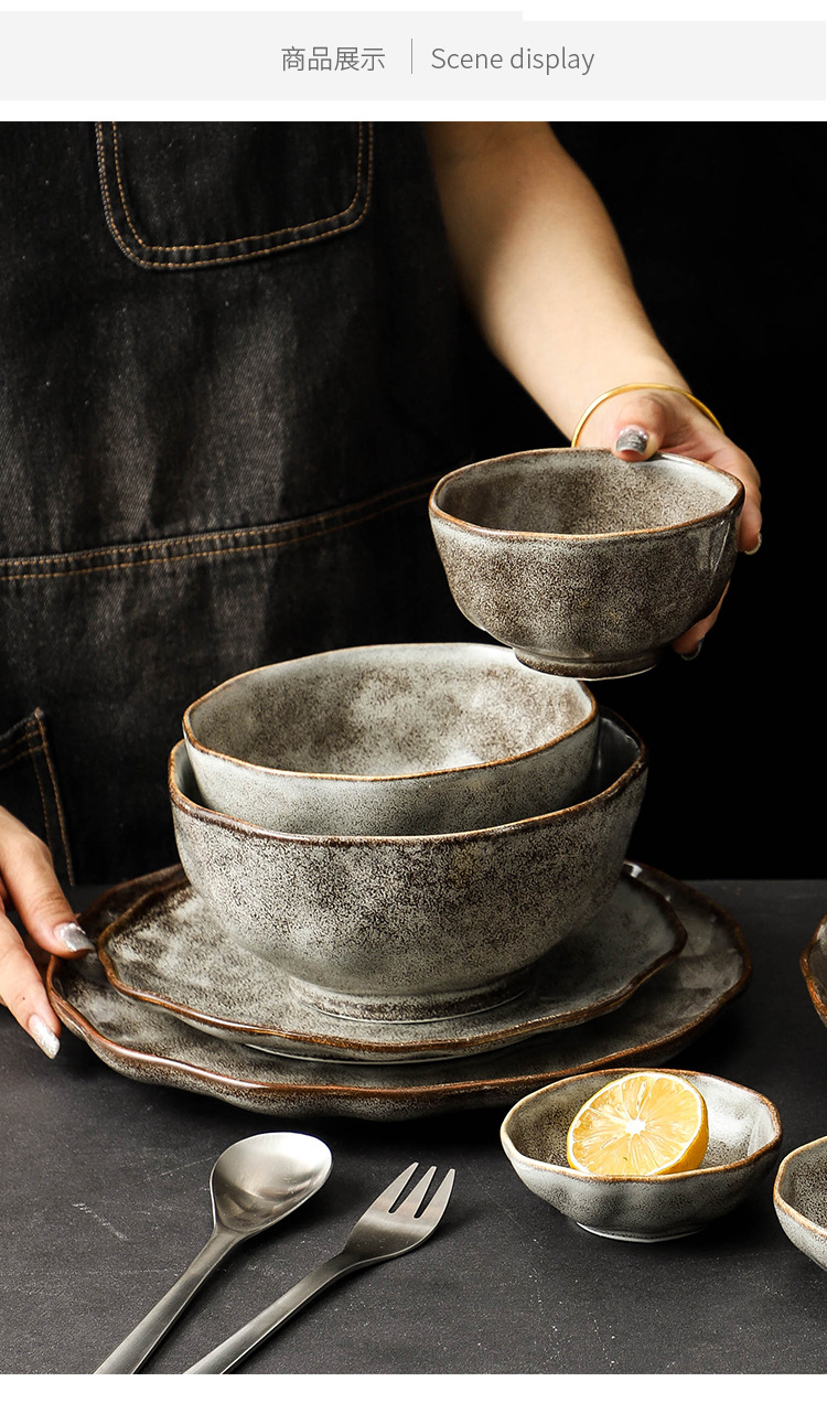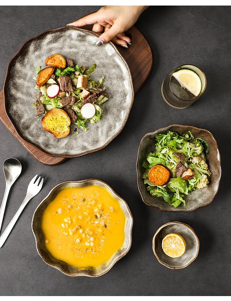 Kitchen Plus Irregular Grain Ceramic Plate Bowls Japanese Style Cutlery Set Dining Set
