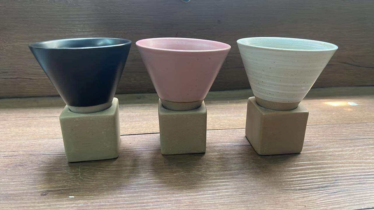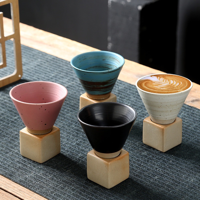 Kitchen Plus Japanese Style 7 oz Ceramic Cone-Shaped Coffee Cup with Cube Base