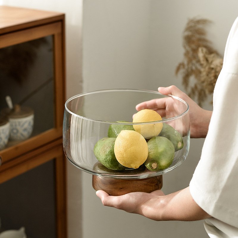 Kitchen Plus Japanese Style Glass Fruit Bowl Serving Bowl Centerpiece Bowl Fruit Plate