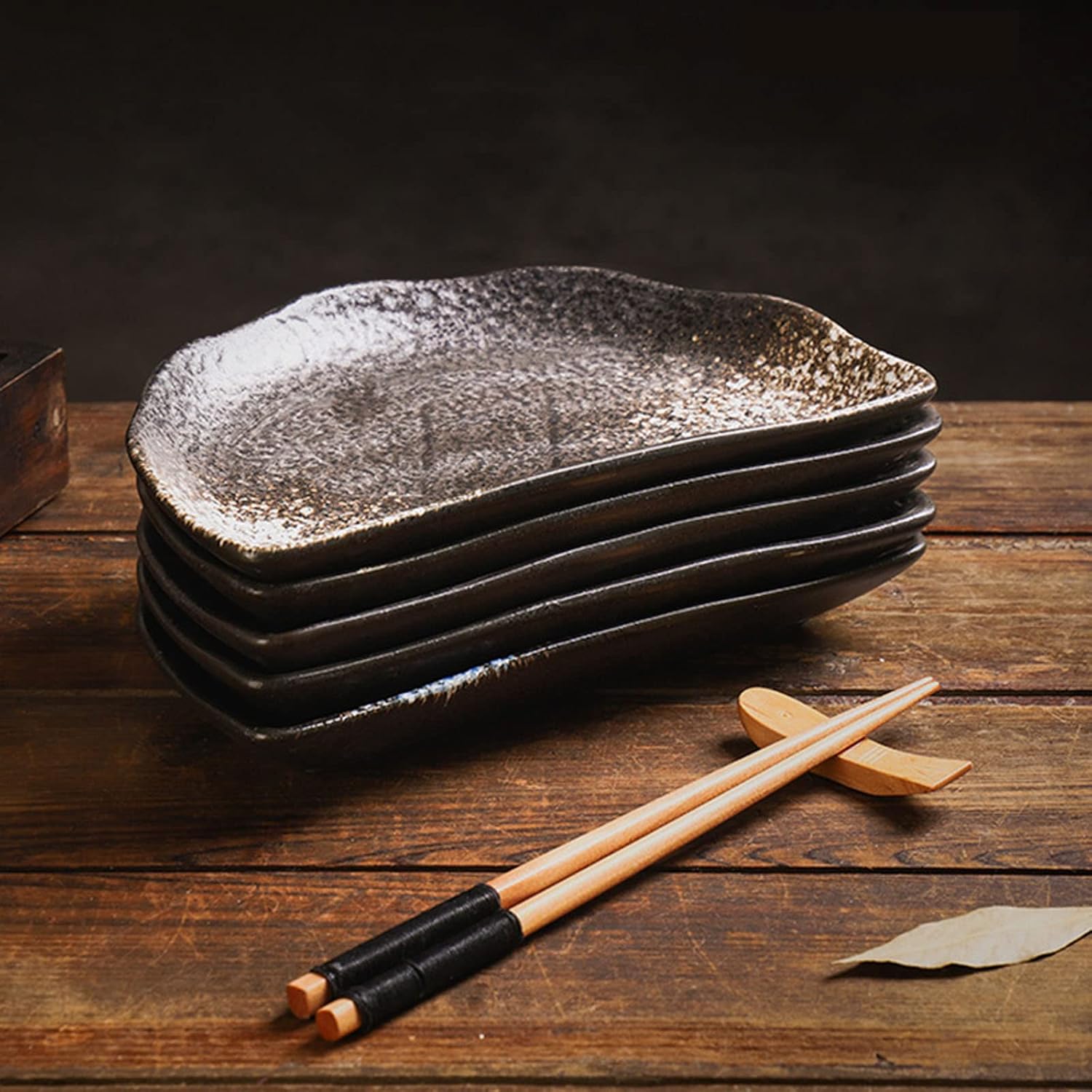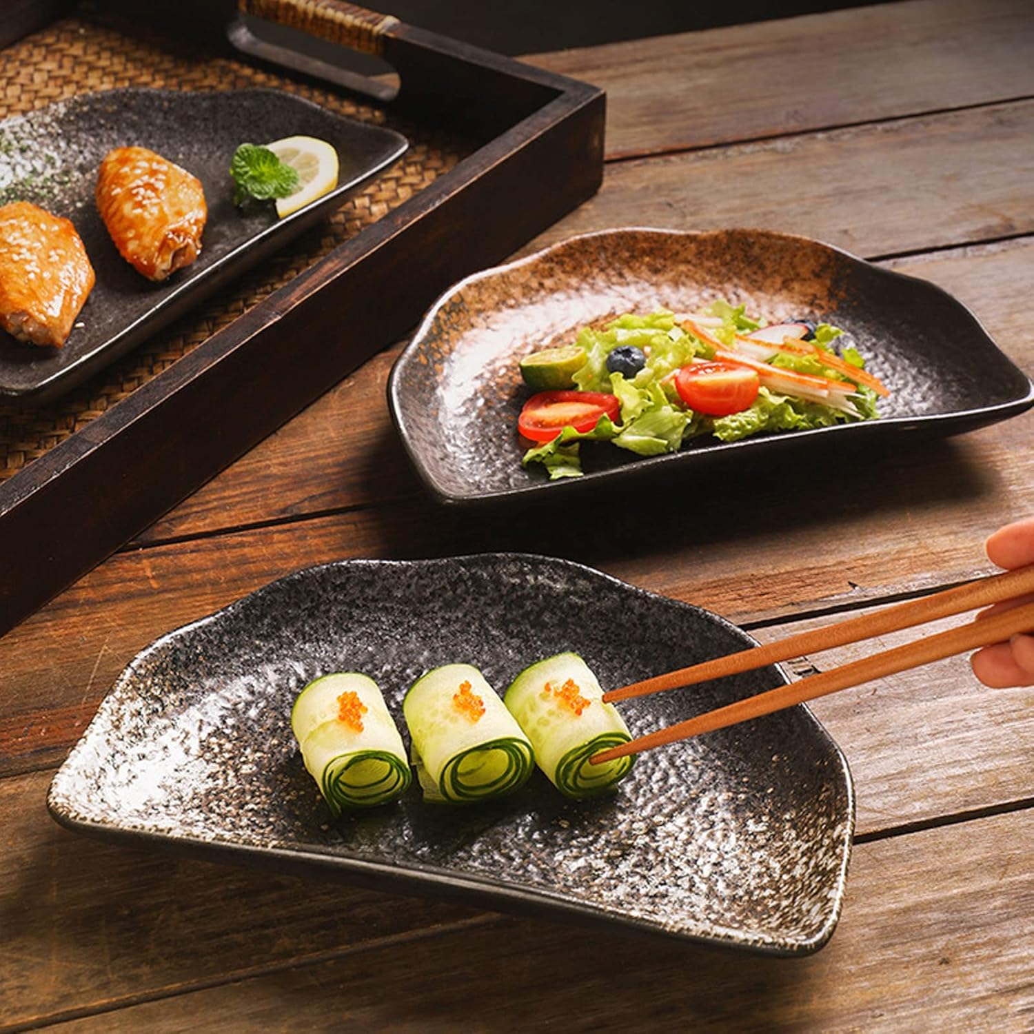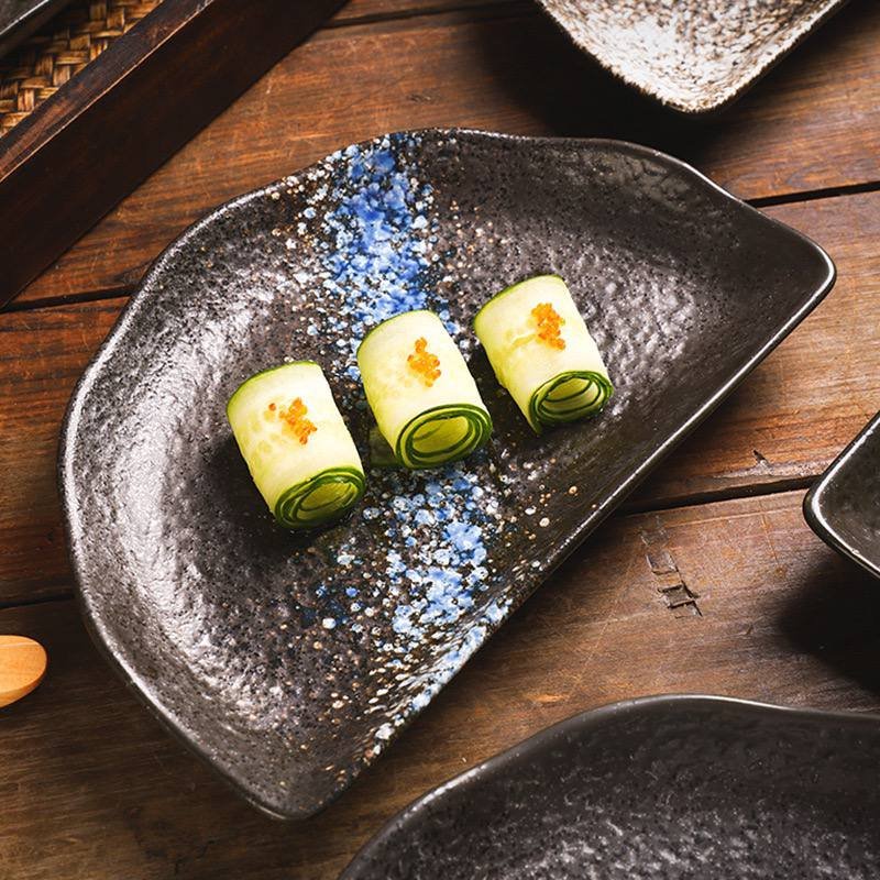 Kitchen Plus Japanese Style Irregular Semi Circle Ceramic Snack Plate Sushi Plate KP1029D- Material: Ceramic