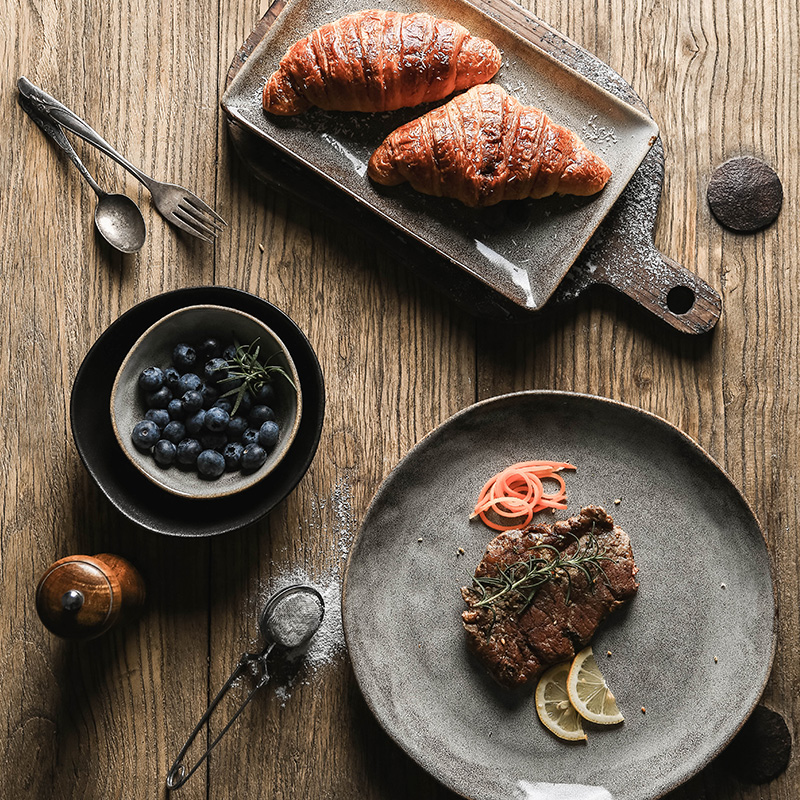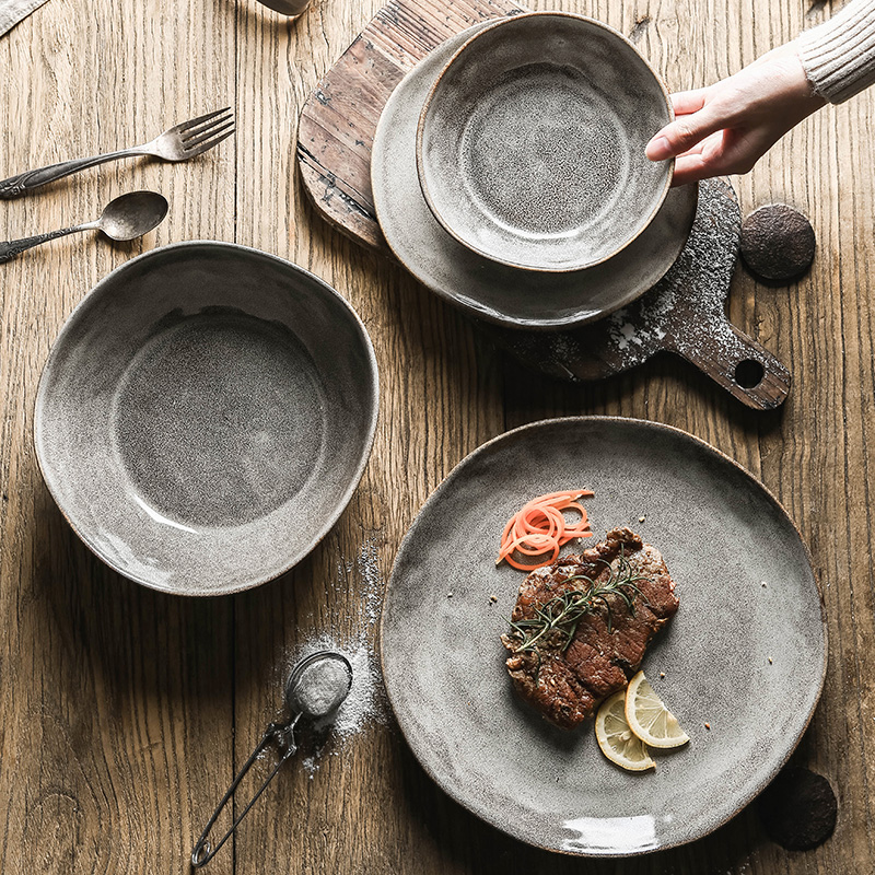 Kitchen Plus Japanese Vintage Glossy Style Ceramic Plate Set Serving Bowl Rice Bowl