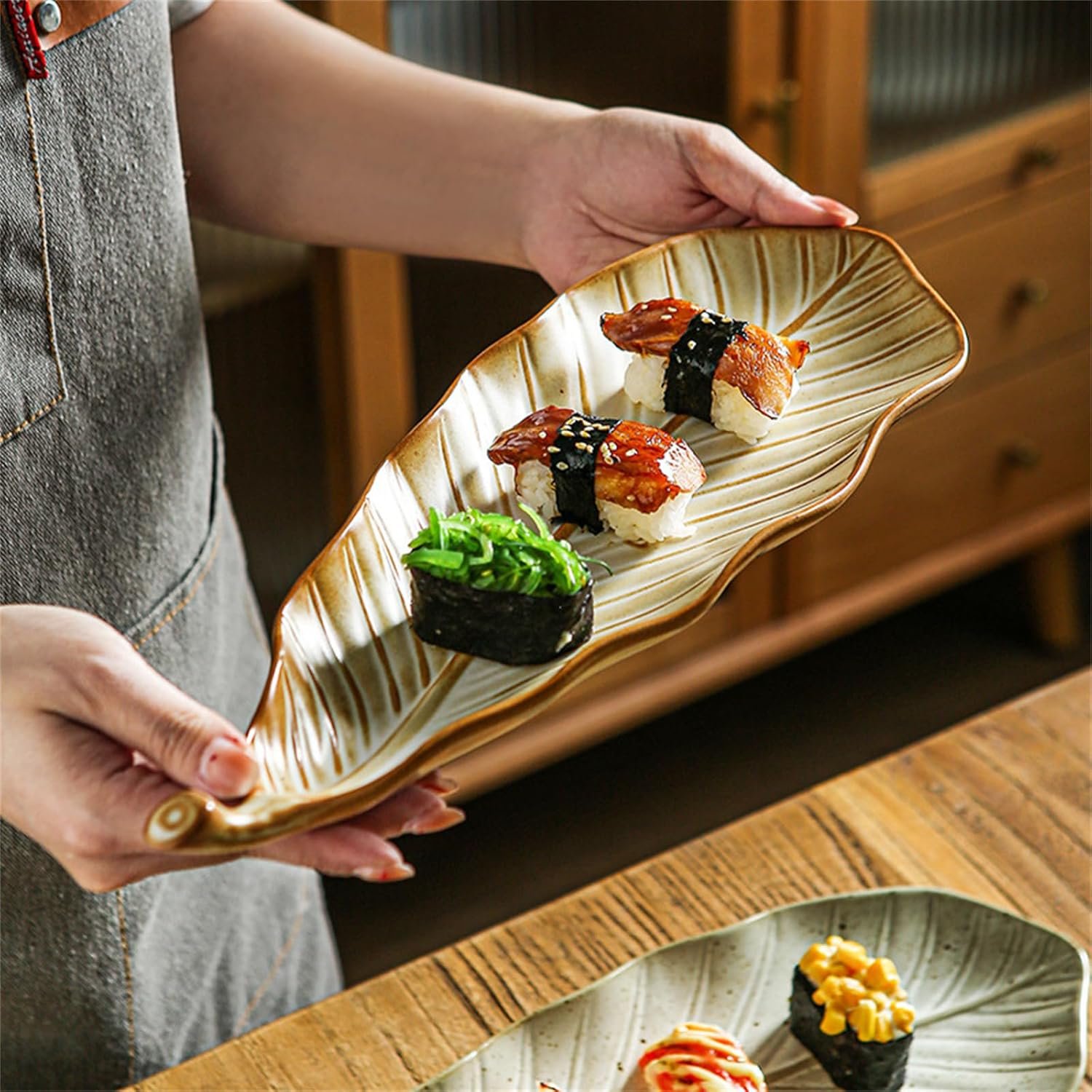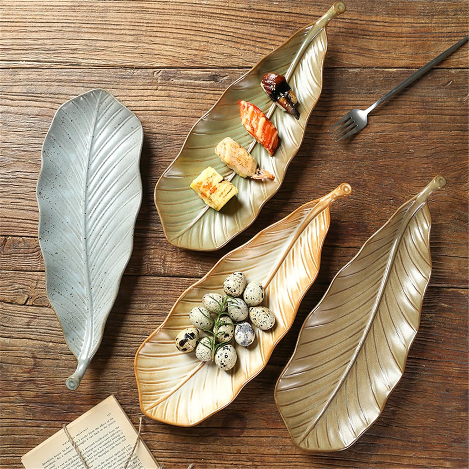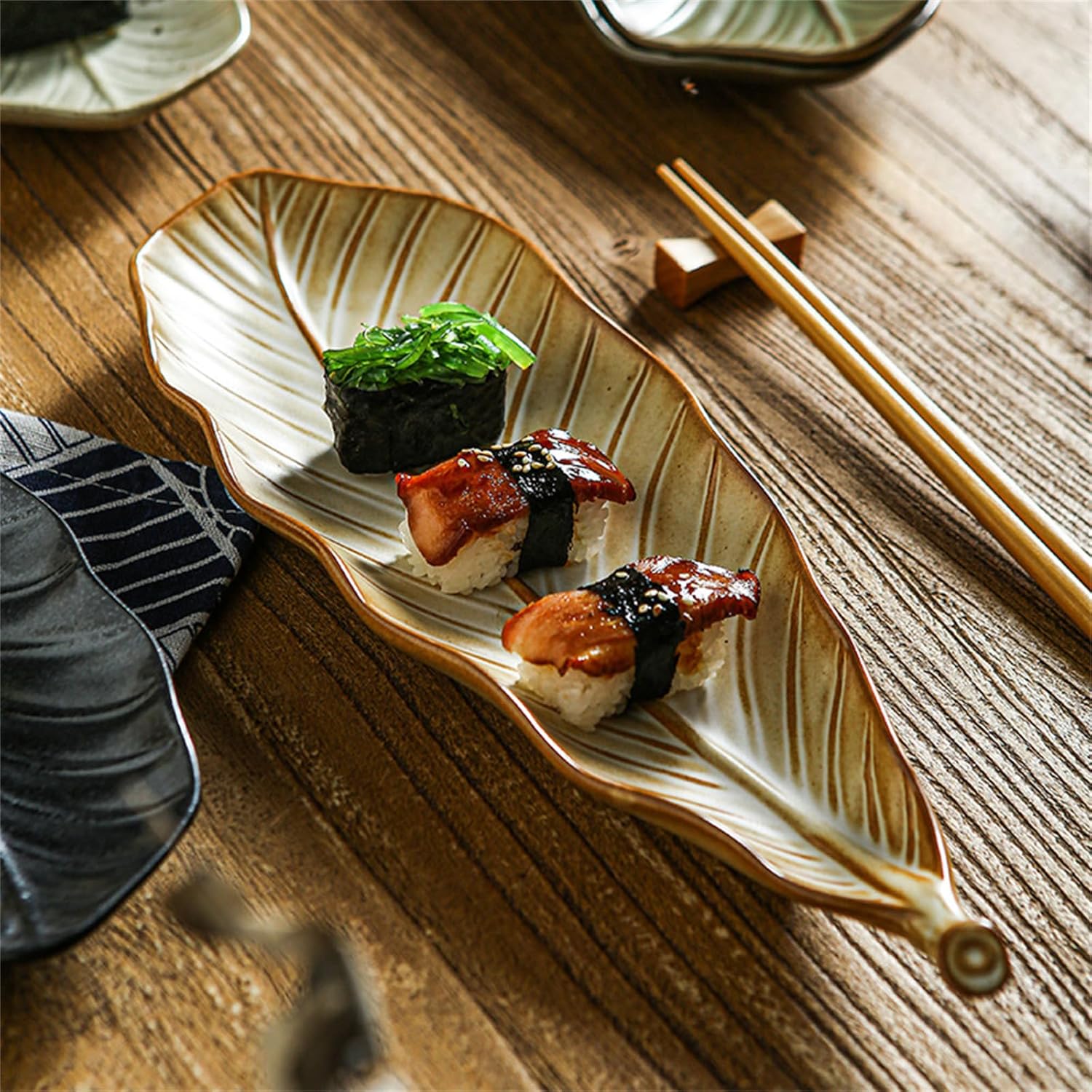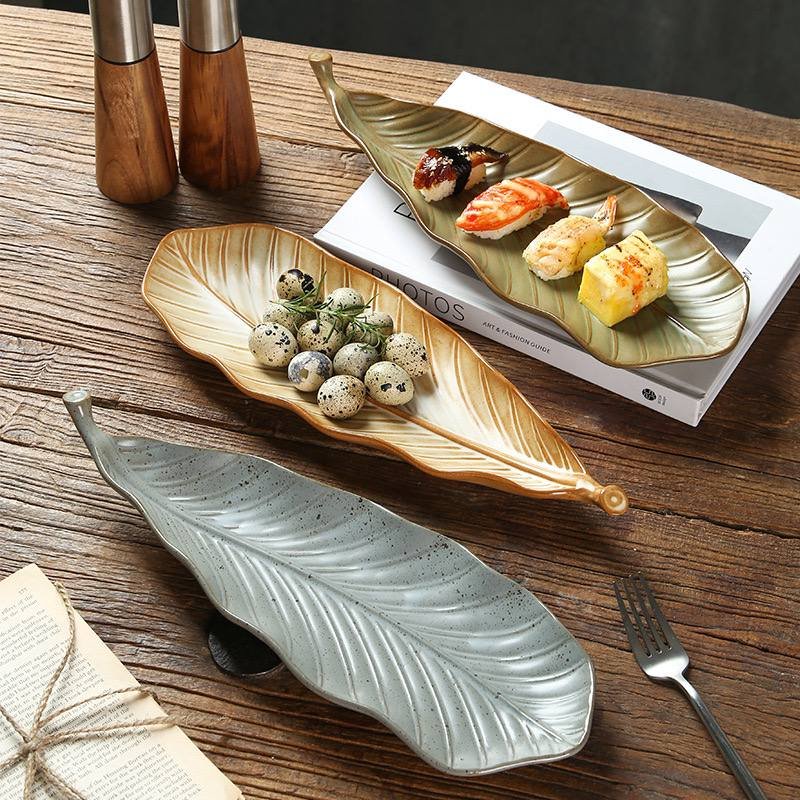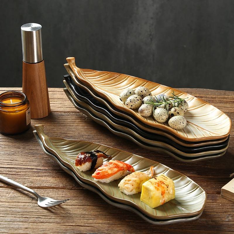Kitchen Plus Retro Leaf Shaped Rustic Ceramic Plate Sushi Plate Display Tray