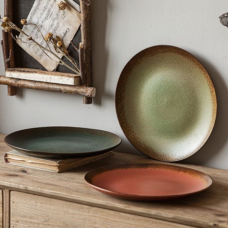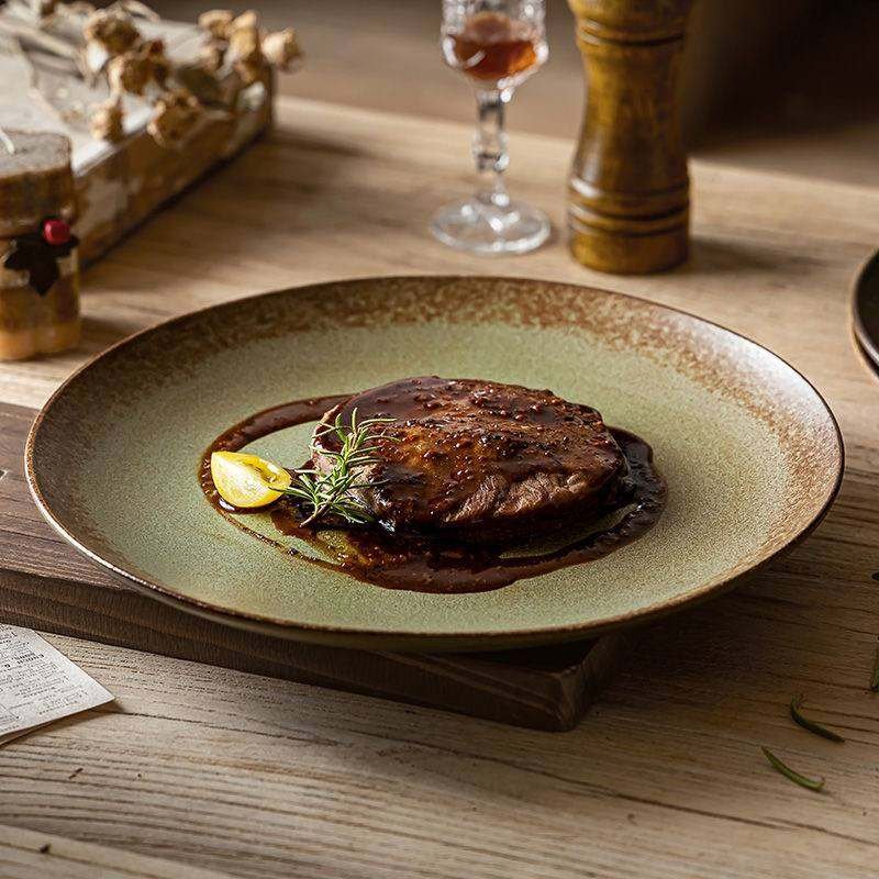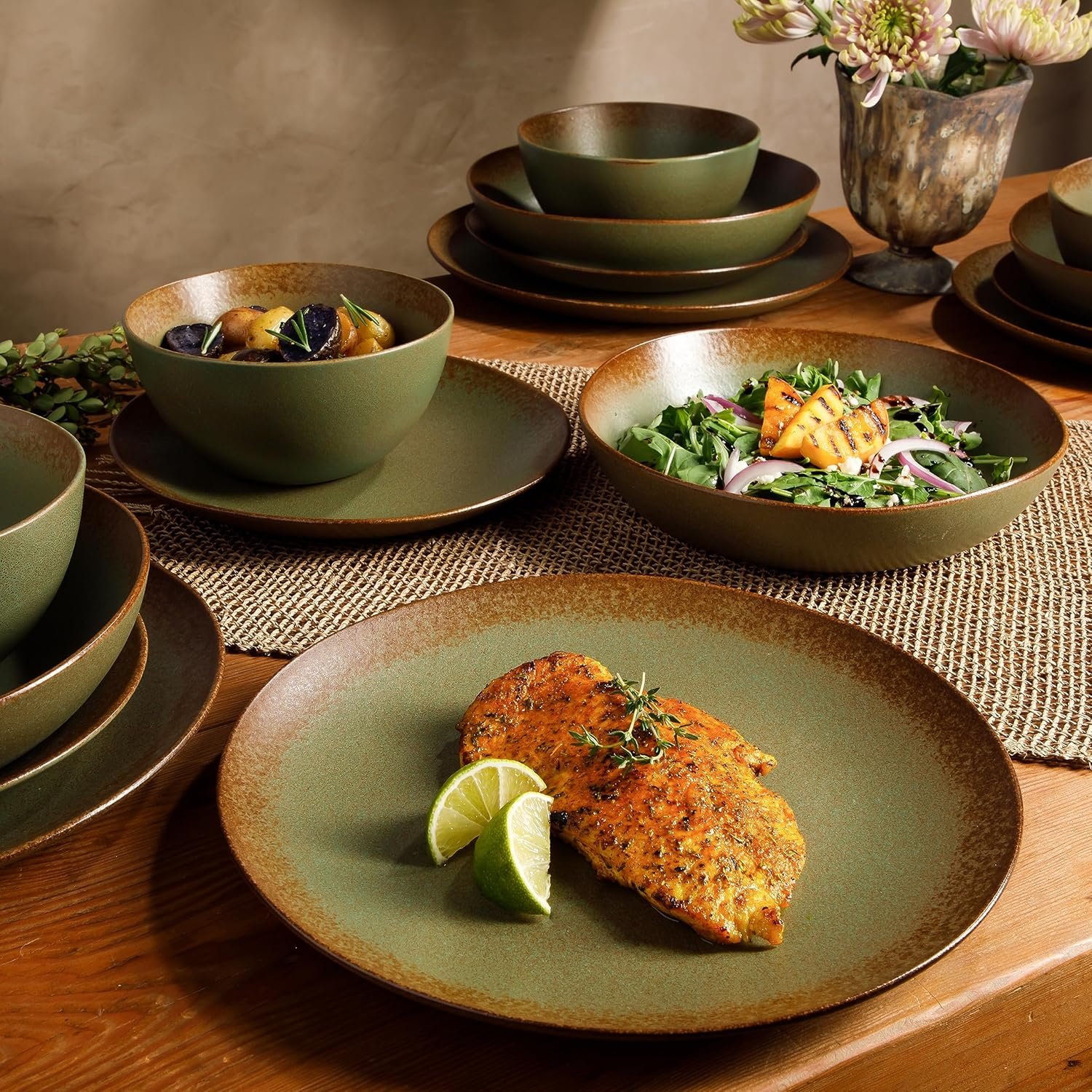 Kitchen Plus Speckled Green Plate Stoneware Reactive Glaze Plates and Bowls Dinnerware Set