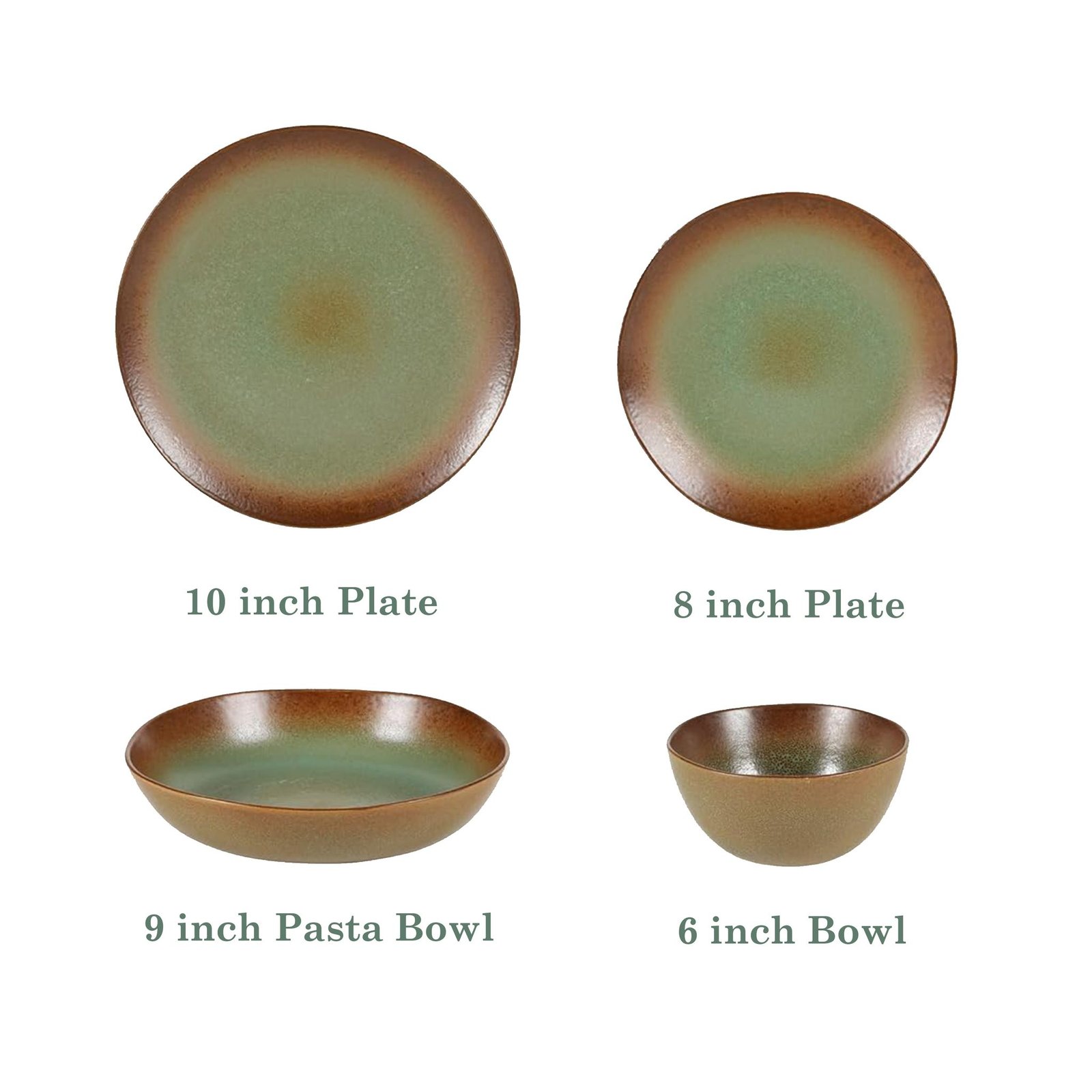 KP554-Green 8 inch Plate, KP554-6 inch Bowl, KP554-9 inch Pasta Plate, KP554-10 inch Plate