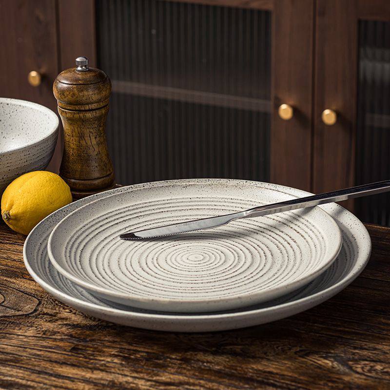 Kitchen Plus Swirl Design White Textured Matte Ceramic Stoneware Plates KP830