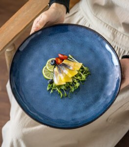 Kitchen Plus Vintage Glazed Blue Ceramic Stoneware Tableware Dinnerware Set Dinner Plate Pasta Bowl KP1122