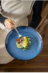 Kitchen Plus Vintage Glazed Blue Ceramic Stoneware Tableware Dinnerware Set Dinner Plate Pasta Bowl KP1122