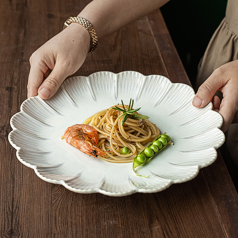 Kitchen Plus White Creative Floral Edged Shaped Ceramic Pasta Plate