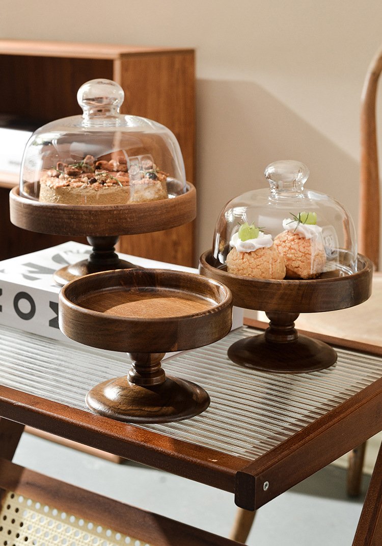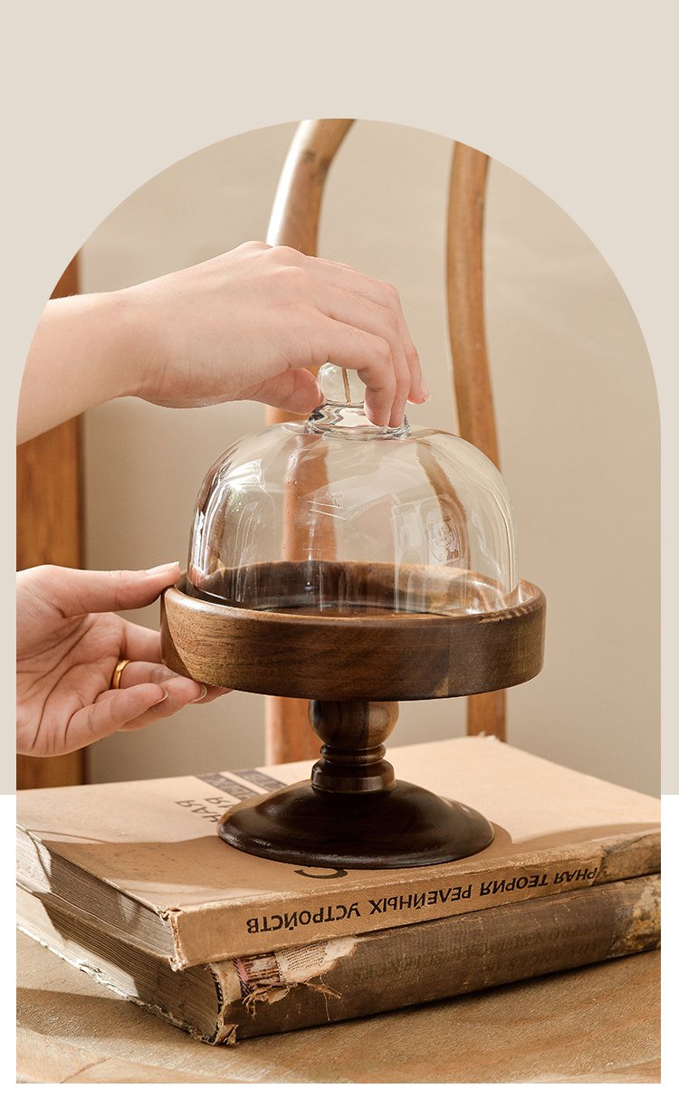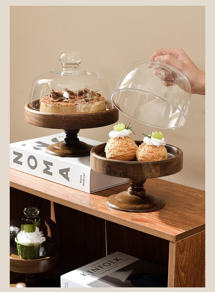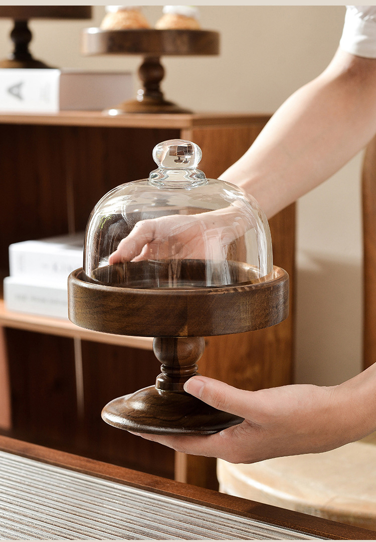 Kitchen Plus Yuri Wooden Round Acacia Serving Cake Display Cake Stand with Glass Lid